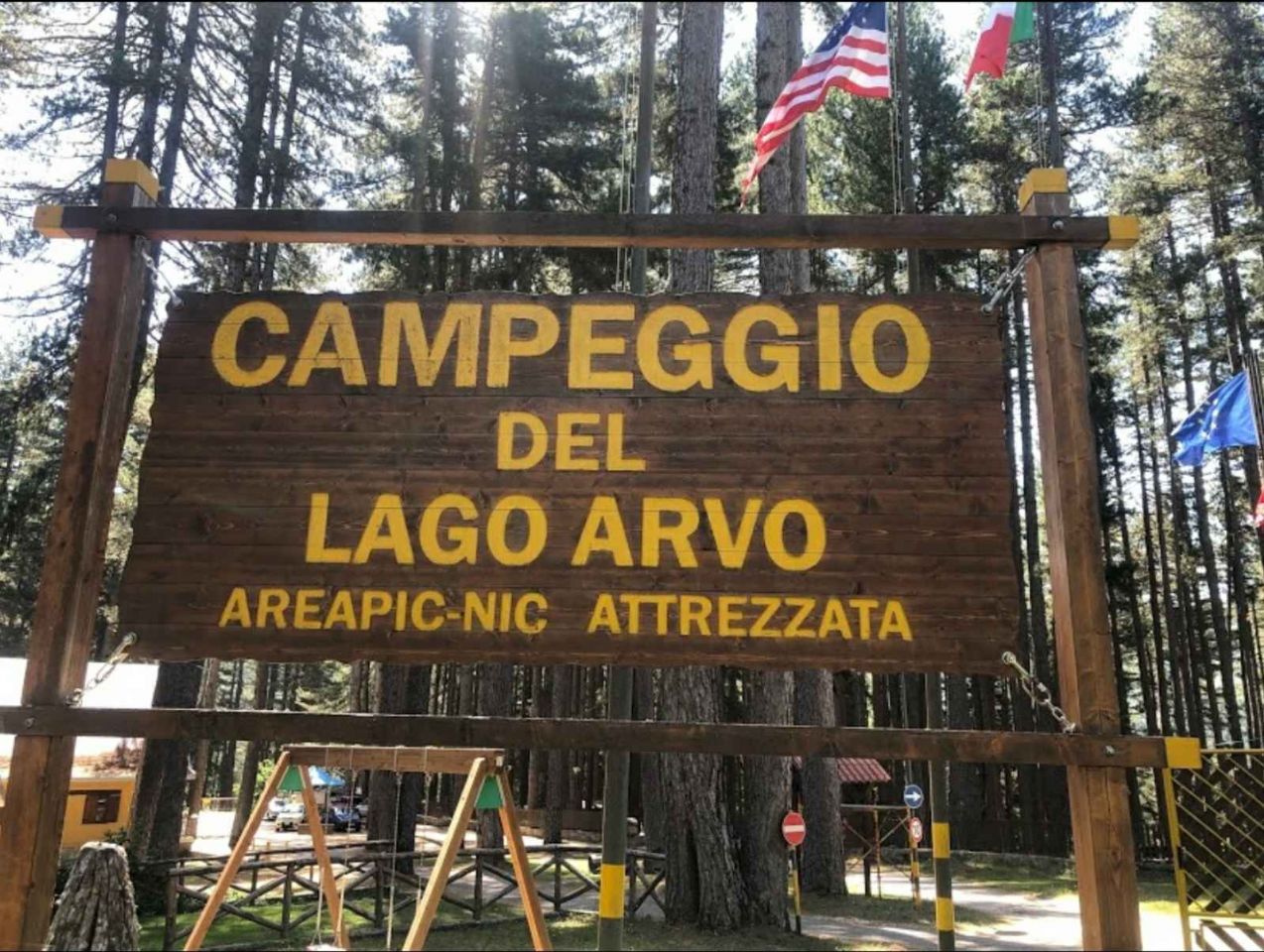 I servizi includono: bagni con docce calde, bar fronte lago, camper service, parco giochi.<>A circa 5 km dalle piste da sci e sul Lago Arvo.