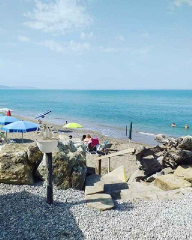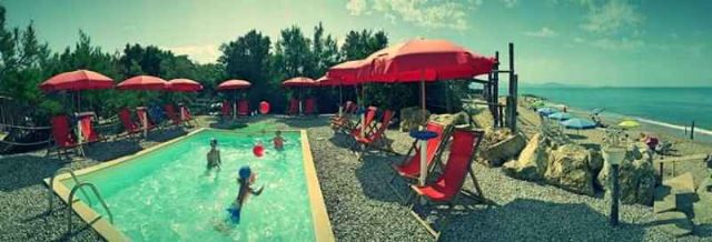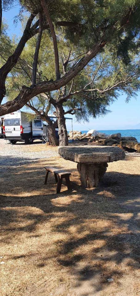 A 4 km dal centro urbano, direttamente sul mare, campeggio con bungalow e 58 piazzole delimitate con attacco elettrico e un lavello con acqua potabile.