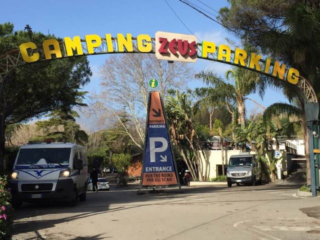 A 50 m dall’ingresso degli Scavi di Pompei e a 20 m dalla stazione circumvesuviana struttura con campeggio, hotel e parcheggio a pagamento, per fermate di poche ore.