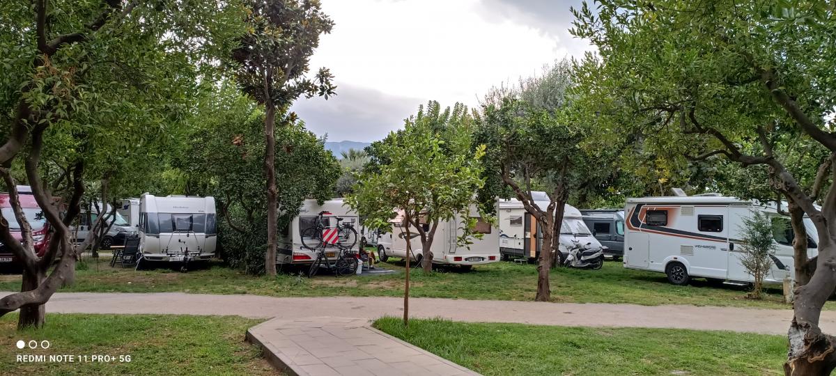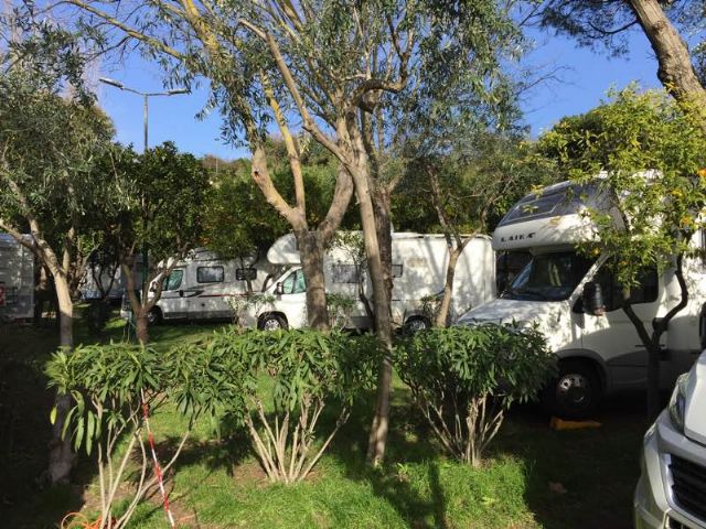 Ottima struttura, tra alberi di agrumi bassi ma non così fastidiosi per grandi mansardati. Blocco bagni datato ma pulito e funzionante. Docce e lavapiatti con acqua calda e miscelatori. Wi-fi gratuito. Veramente vicina a scavi e stazione. Il paese invece dista quasi 2 km, raggiungibile su largo marciapiedi (comodo anche con bici). Pagato 30 euro/gg per 2 adulti, 2 bimbi, camper e corrente elettrica. Io lo consiglio.