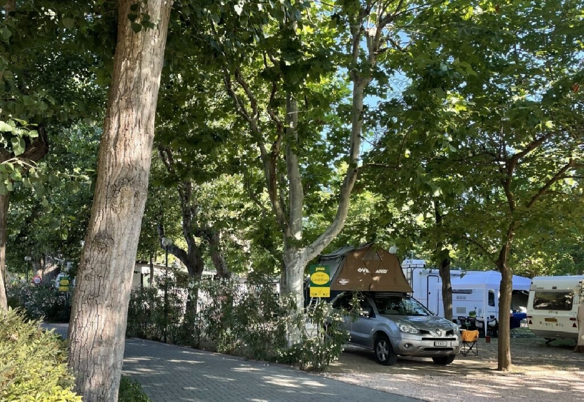 Servizi sanitari con docce calde gratuite, baby room, bar, scarico cassetta WC chimico, camper service, wifi, noleggio biciclette.