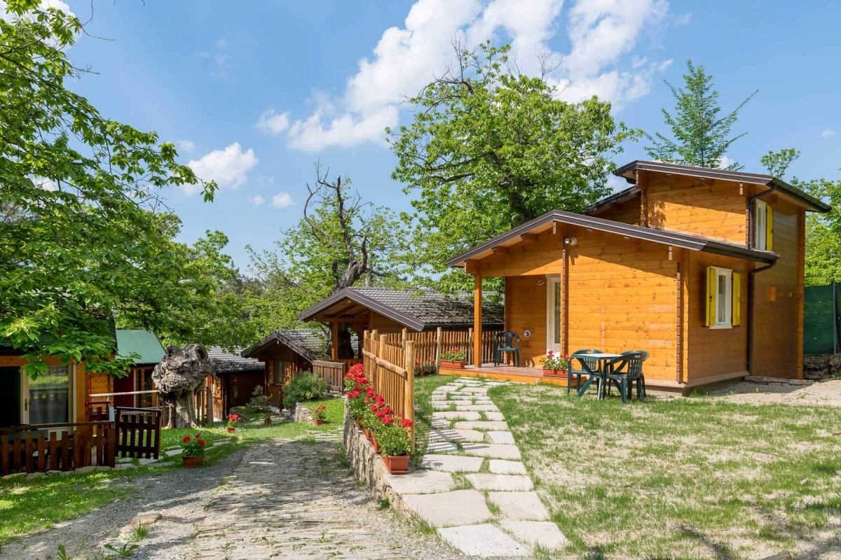Alle pendici del Monte Cimone, all’interno di un parco di castagni, campeggio famigliare parzialmente ombreggiato composto bungalow e chalet, 8 piazzole per tende e 12 piazzole per camper ognuna con allaccio elettrico, alcune anche con carico/scarico e bagno personale.
