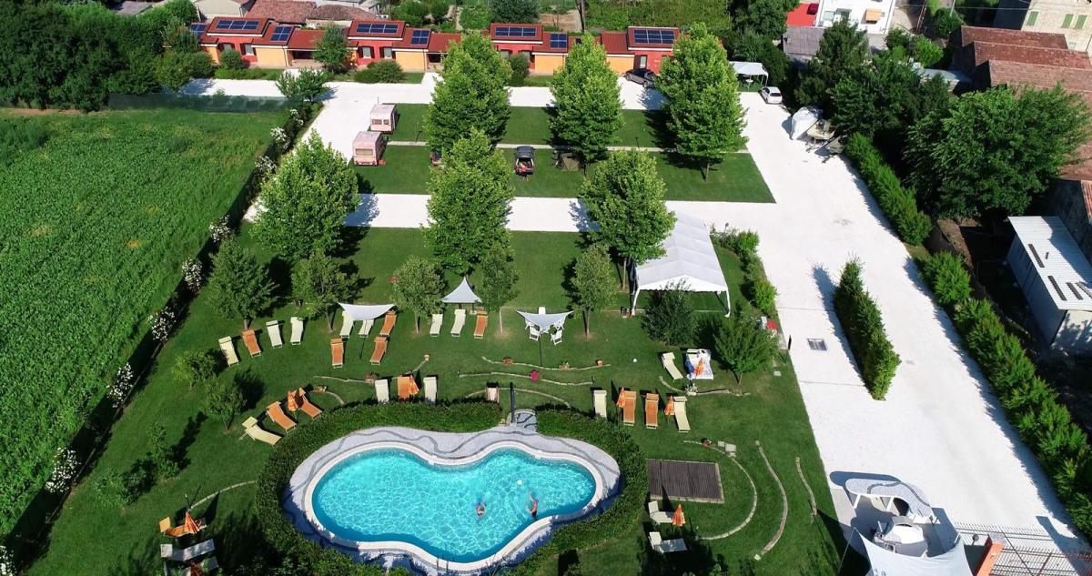 A 500 m dal borgo medioevale e in prossimità dell'argine del Po, il villaggio turistico eco-friendly a conduzione famigliare offre 6 villette indipendenti, 4 caravan a noleggio e zona campeggio con 18 piazzole pianeggianti su manto erboso servite da colonnine con allacci idrici ed elettrici.