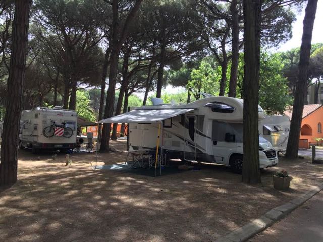La struttura dispone di ampie piazzole ombreggiate adatte anche a camper di grandi dimensioni.