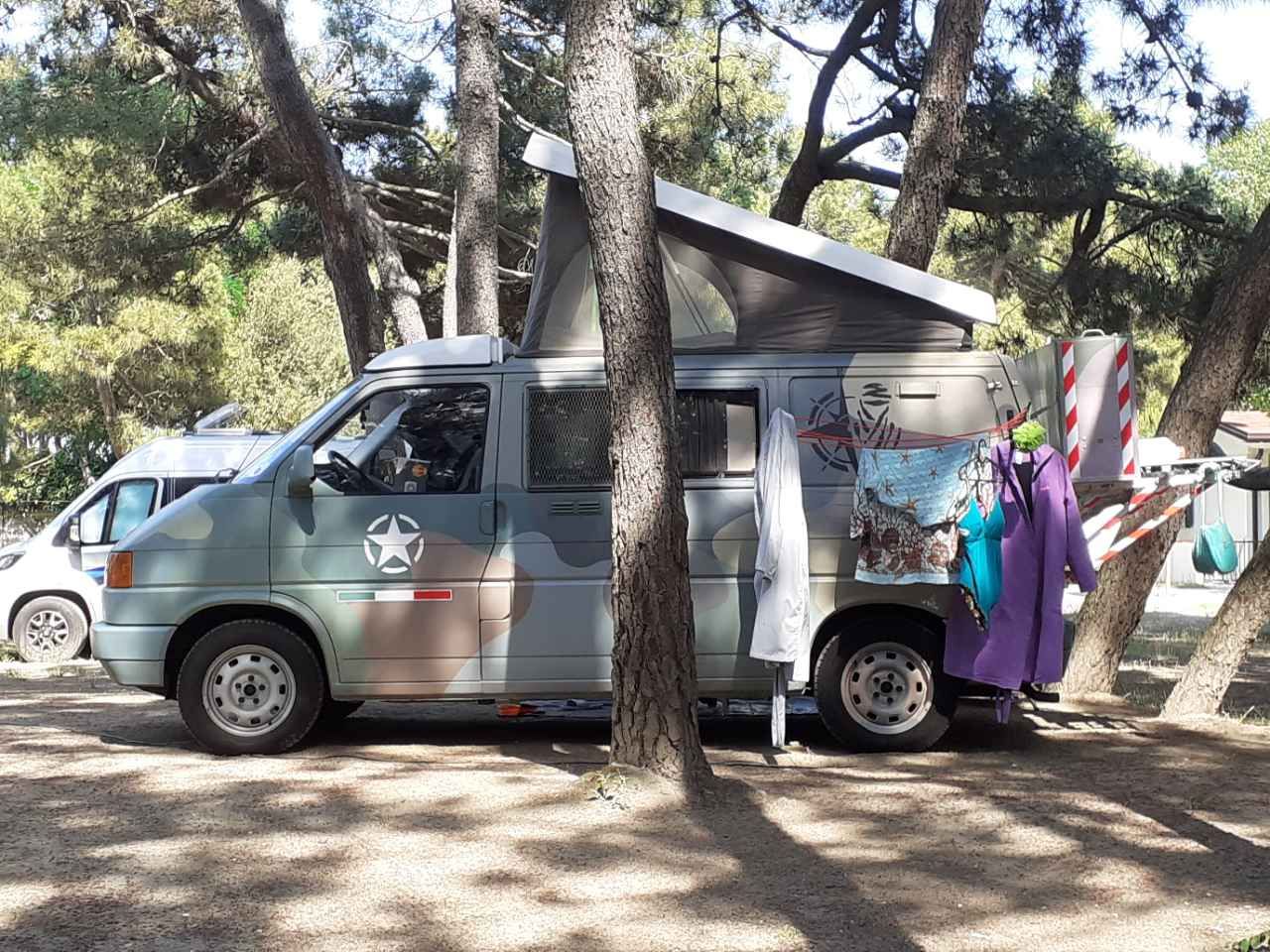 Soluzione camper stop con elettricità e accesso a tutti i servizi del campeggio.