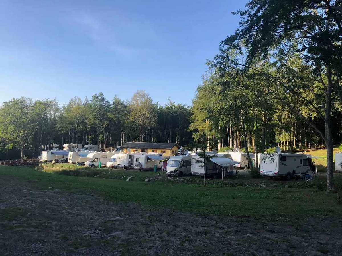 Immerso nella natura a poca distanza dalle piste da sci, piccolo campeggio montano con bungalow privati, piazzole per camper e tende, allaccio elettrico, bar-ristorante, bagni, docce calde a gettone, carico/scarico.