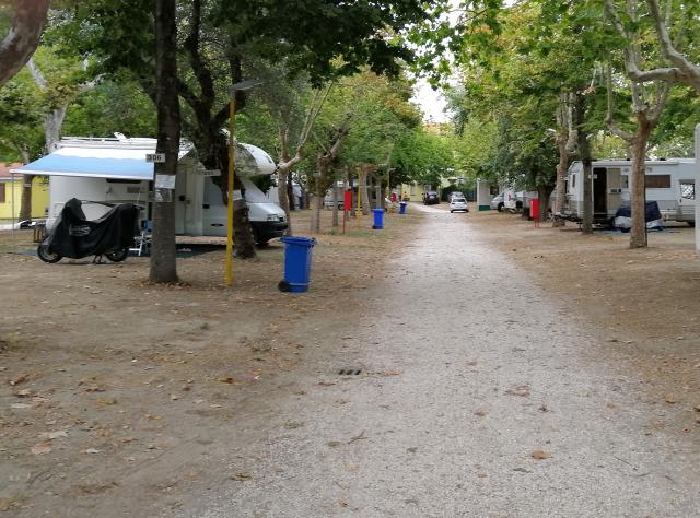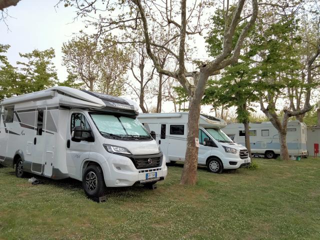 Il campeggio dispone di 200 piazzole di diverse metrature (3 tipologie) su terreno erboso, ombreggiate da una pineta naturale, fornite di energia elettrica (da 3A a 10A).