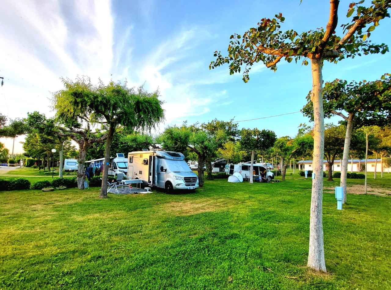 I servizi presenti includono allaccio elettrico, fontanelle acqua, piscina, mini market, ristorante, bar, servizi igienici, docce calde gratuite, lavatrici, lavelli per lavaggio stoviglie e indumenti, stazione camper/service, zona BBQ.