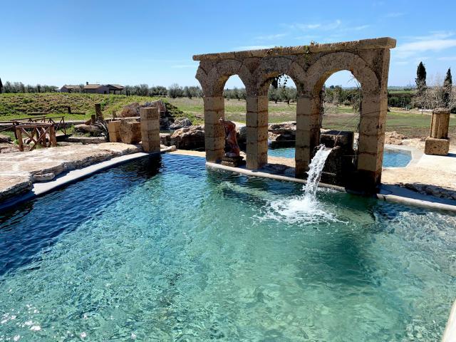 A disposizione dei clienti piscine con acque naturali a temperature differenti, sauna e bagno turco all'interno di una grotta in pietra.
