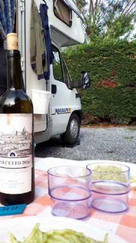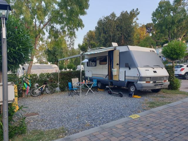 A 300m dal mare e a 150m dal centro, campeggio con piazzole per camper, caravan e tende, con fondo in ghiaia sono di diversa tipologia: alcune già dotate in piazzola di presa per l'elettricità 6A, rubinetto per carico acqua potabile e pozzetto per lo scarico delle acque grigie, le Basic utilizzano i servizi del campeggio non in piazzola.