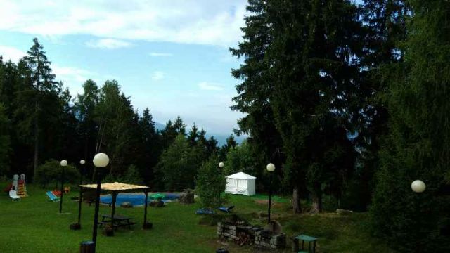 Nel Parco dell'Adamello, campeggio ombreggiato e pianeggiante con chalet a noleggio, 8 piazzole camper e spazio riservato alle tende.