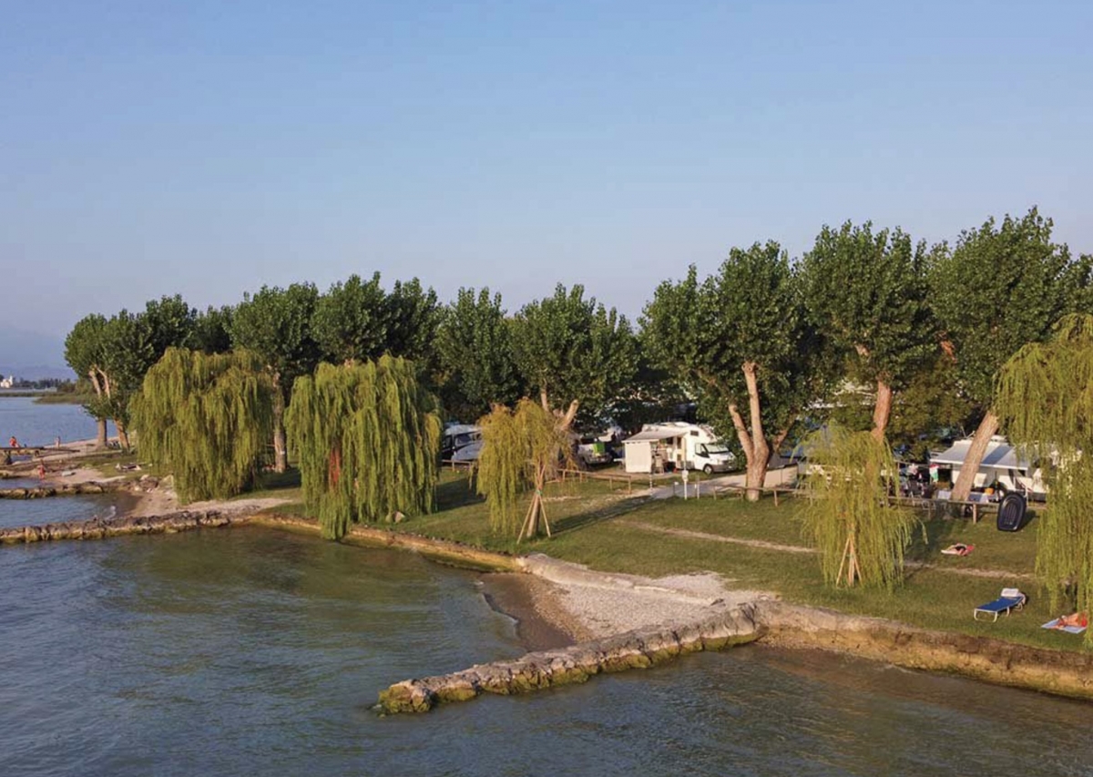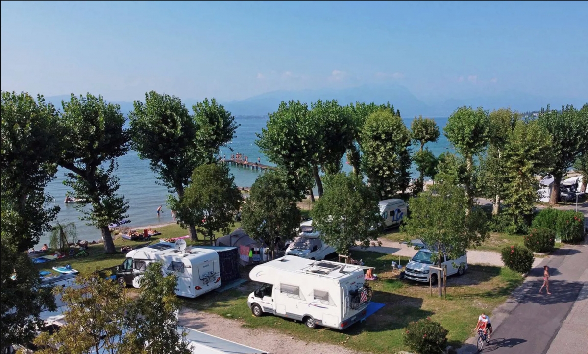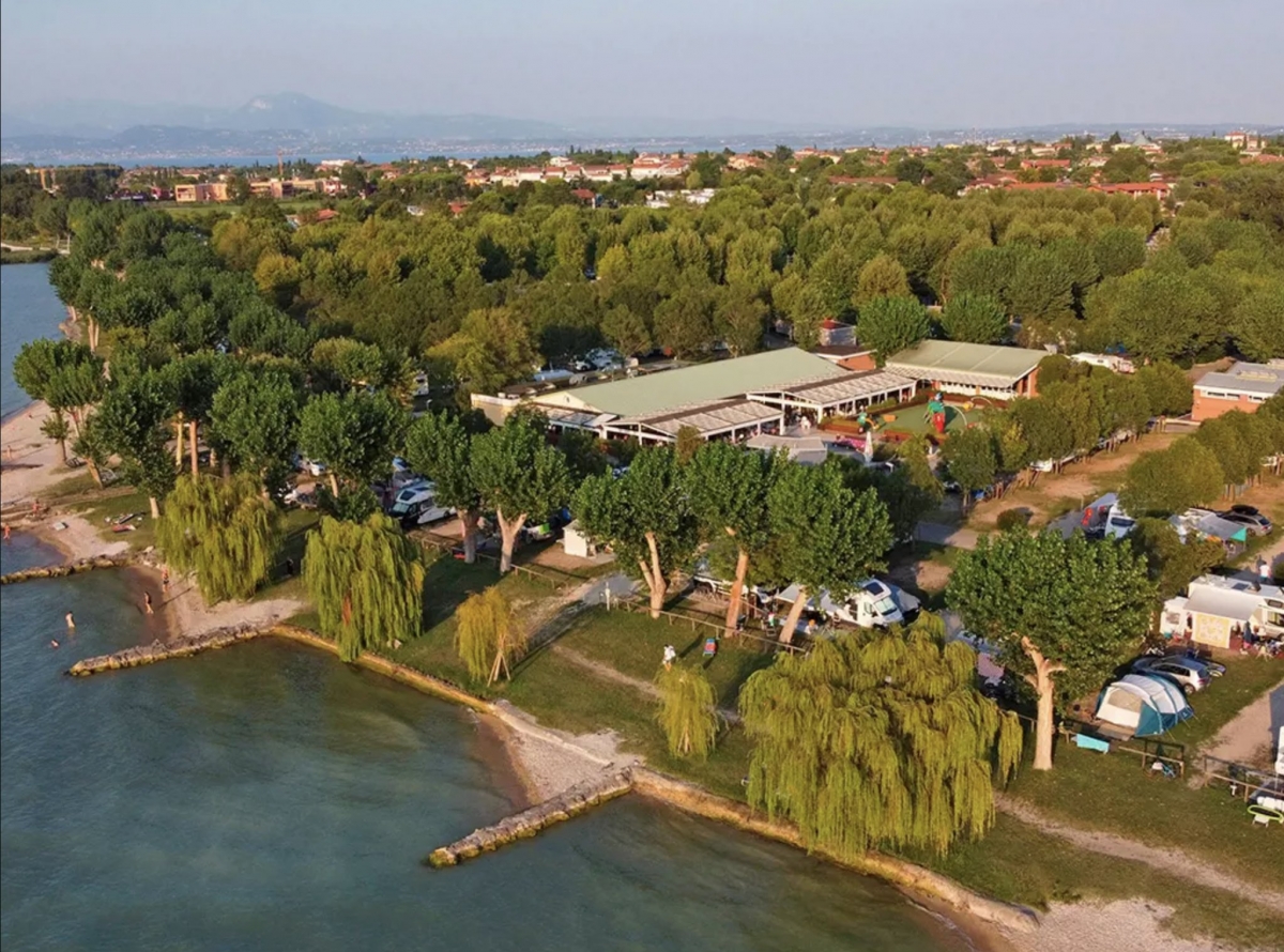 A 1,6 km dal centro di Sirmione, affacciato sul golfo di Desenzano e sulla penisola di Sirmione con 400 m di spiaggia privata, il campeggio ecosostenibile offre 10 tipologie di case mobili e piazzole di varie dimensioni e ubicazione, con allaccio elettrico da 6 A fino a 16 A, alcune dotate anche di carico e scarico diretto.