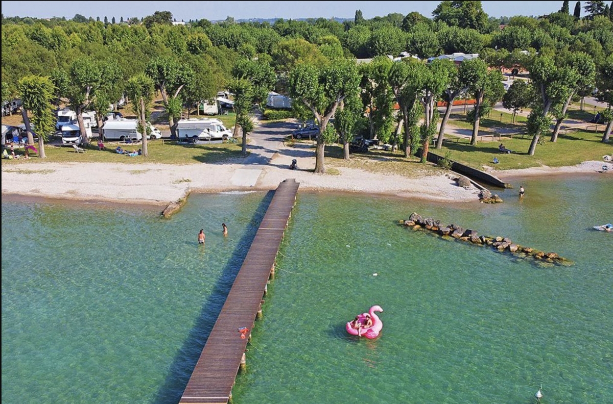 In riva al Lago con spiaggia privata.Servizi ottimi: market, reception, piscine, sport. Ottima pulizia dei bagni e degli spazi comuni. Uniche pecche: piazzole in forte pendenza che mettono a dura prova i cunei e C/S a pagamento.
