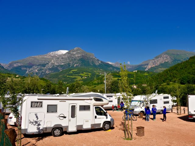 Situato nel Parco Nazionale dei Monti Sibillini, a poca distanza dal paese, la struttura dispone di 25 piazzole disposte a terrazze ombreggiate e al sole con allaccio 220V e fontanella acqua.