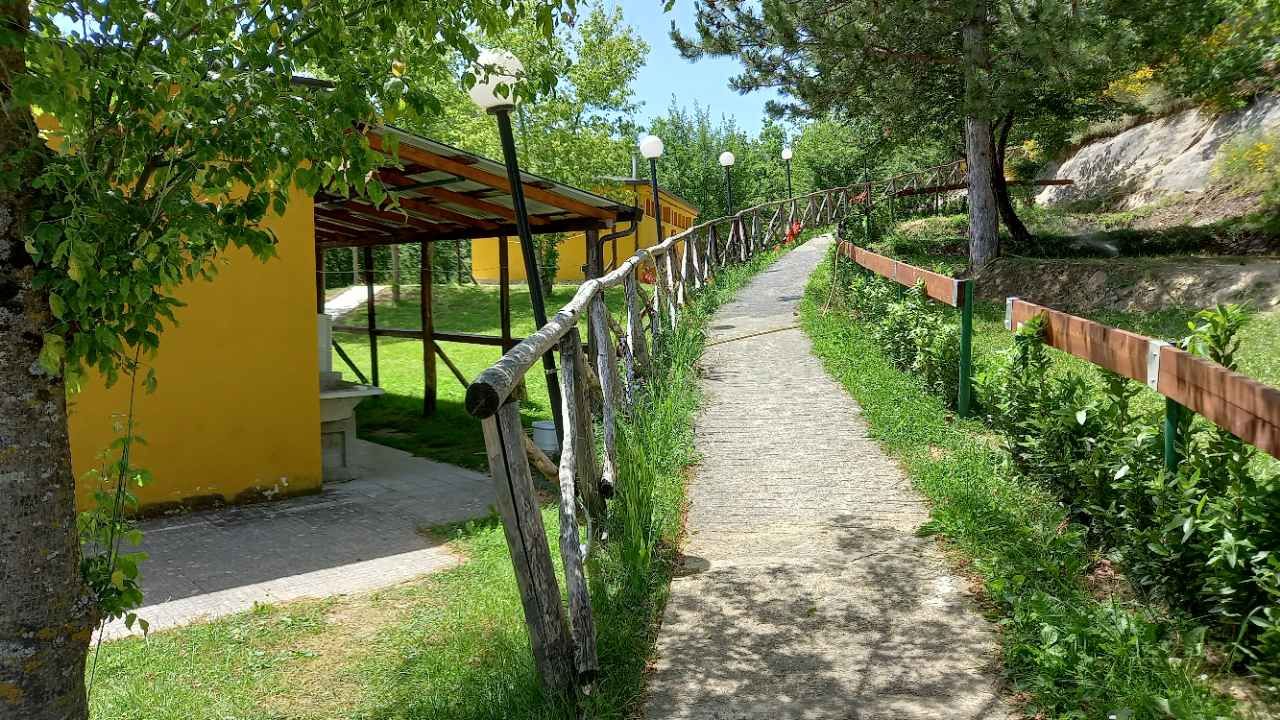 Situato nel Parco Nazionale dei Monti Sibillini, il campeggio dispone di 12 bungalow in legno e 60 piazzole per camper, caravan e tende non delimitate, immerse nel bosco, con vista panoramica sul monte Vettore.
