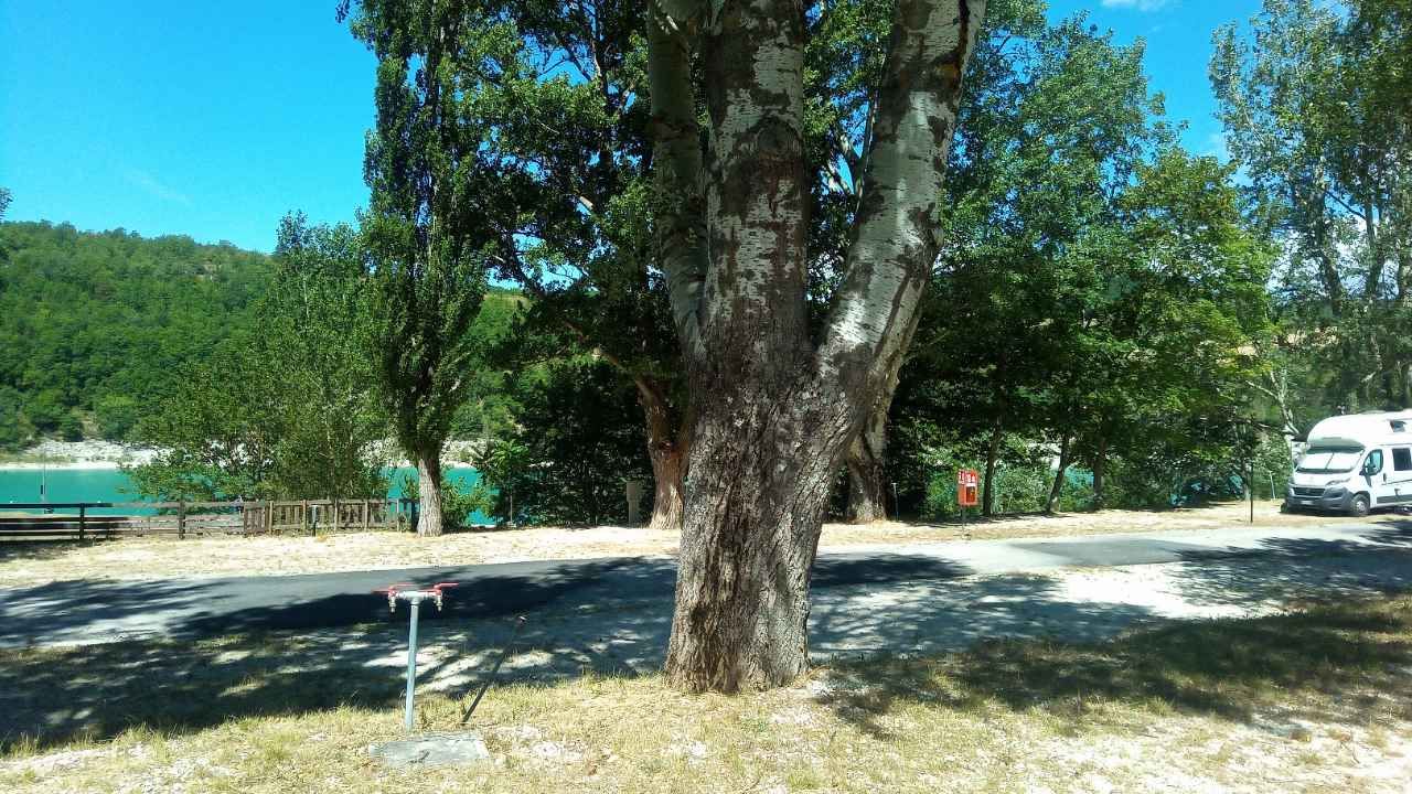 Struttura un pò spartana ma dove non manca nulla. Le piazzole sono ampie e molte con vista lago. I servizi di carico e scarico sono moderni inoltre ogni piazzola è munita di allaccio elettrico oltre a una fontanella per l'acqua potabile e scarico acque grigie. I servizi igienici anche se un pò vetusti sono sufficienti allo scopo. Il personale è molto disponibile e cortese. Facendo una piccola passeggiata si arriva alla spiaggia libera del lago dove si può fare un bel bagno rinfrescante o fare una bella gita in canoa. Da tornarci per una vacanza un pò più lunga.