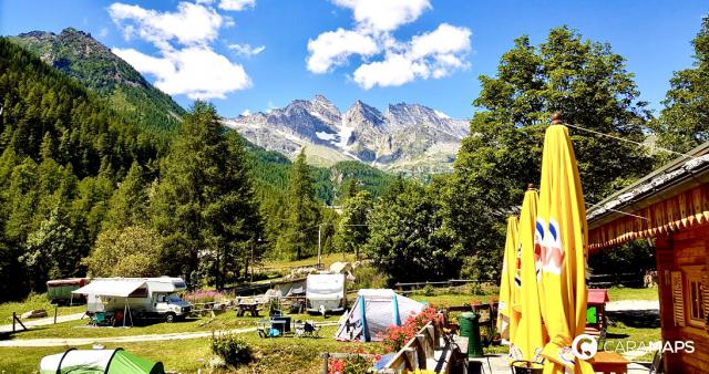 A 1,5 km dal centro, campeggio Eco sostenibile impegnato nella protezione del parco del Gran Paradiso, dotato di tende glamping e 25 piazzole su erba, bar, punto ristoro, elettricità, carico acqua.