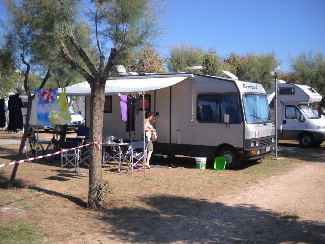 Campeggio a gestione familiare, sul mare, servizi, bagnino in spiaggia, animatori per bambini, docce calde a pagamento, lavatrice a gettone.