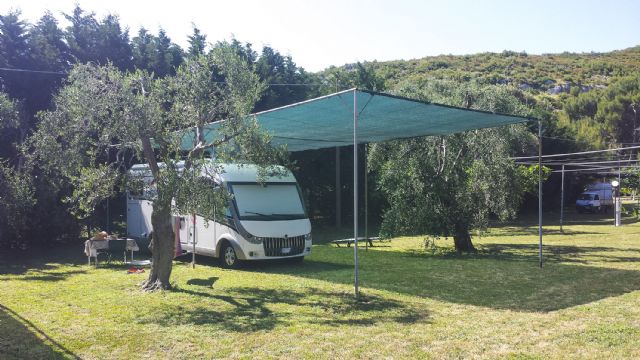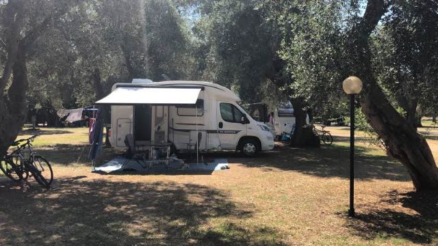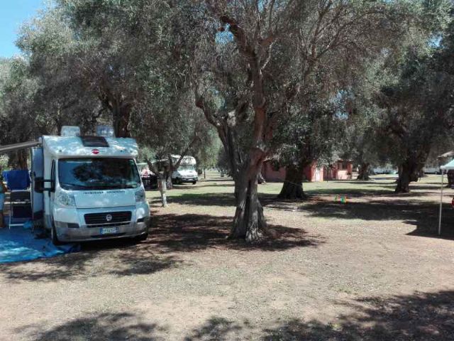 Struttura con 300 piazzole su erba, non delimitate, con allaccio elettrico, ombreggiate da oliveto e ombreggianti artificiali, camper service, servizi con acqua calda, bagni per disabili, lavatrice a gettone (5 euro), due piscine, campo da tennis, da calcetto, basket beach-volley, bocce, tennis da tavolo, parco giochi, animazione diurna e serale.