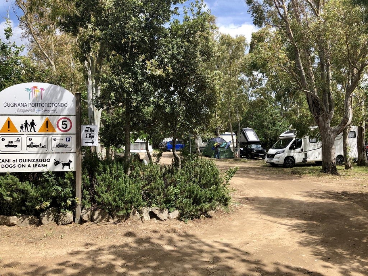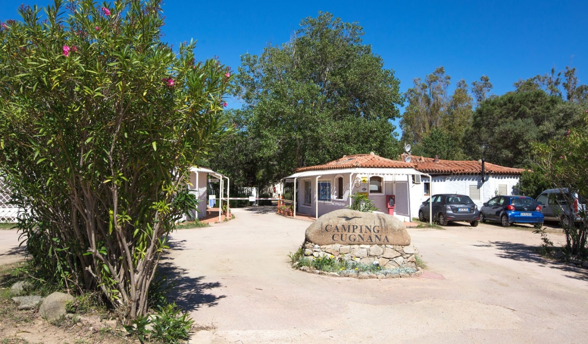 In costa Smeralda, a 8 km da Porto Rotondo, campeggio con bungalow e piazzole ombreggiate per camper e caravan, e area per tende, tutte servite da allaccio elettrico.