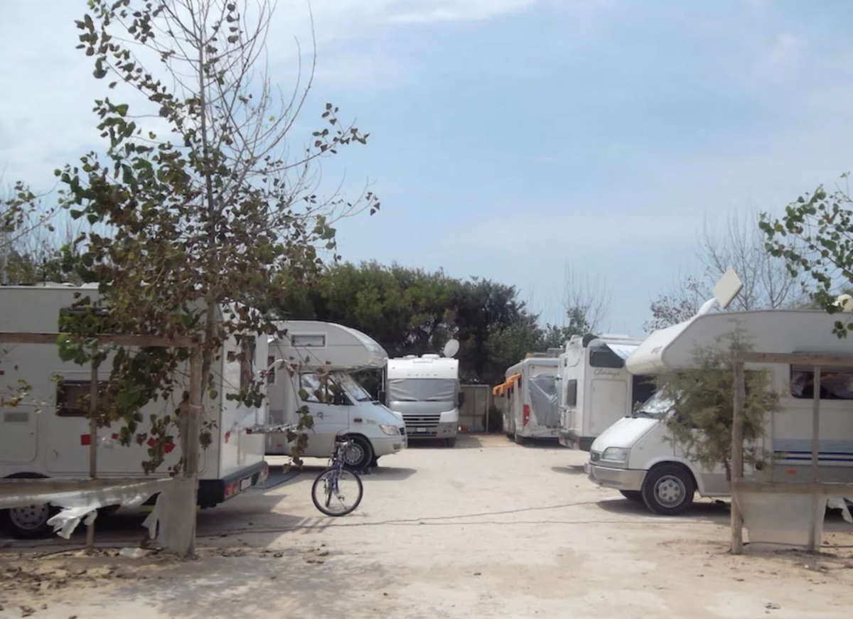 Area con piazzole non delimitate; presenza di tende. Strade interne polverose con via vai di mezzi agricoli e dei campeggiatori. Su nostra richiesta hanno aperto gli zampilli (già predisposti) per bagnare la strada principale. Piazzole con ombra totale nella pinetina dove però i piccioni imbrattano tutto ciò che hanno sotto di loro. Ci siamo spostati in pieno sole. Mosche in gran quantità. Docce e lavelli comodi e con acqua calda sempre. Sconto 10% con varie convenzioni. Mare, spiaggia e paese come da precedenti commenti. Struttura non adeguatamente sfruttata.