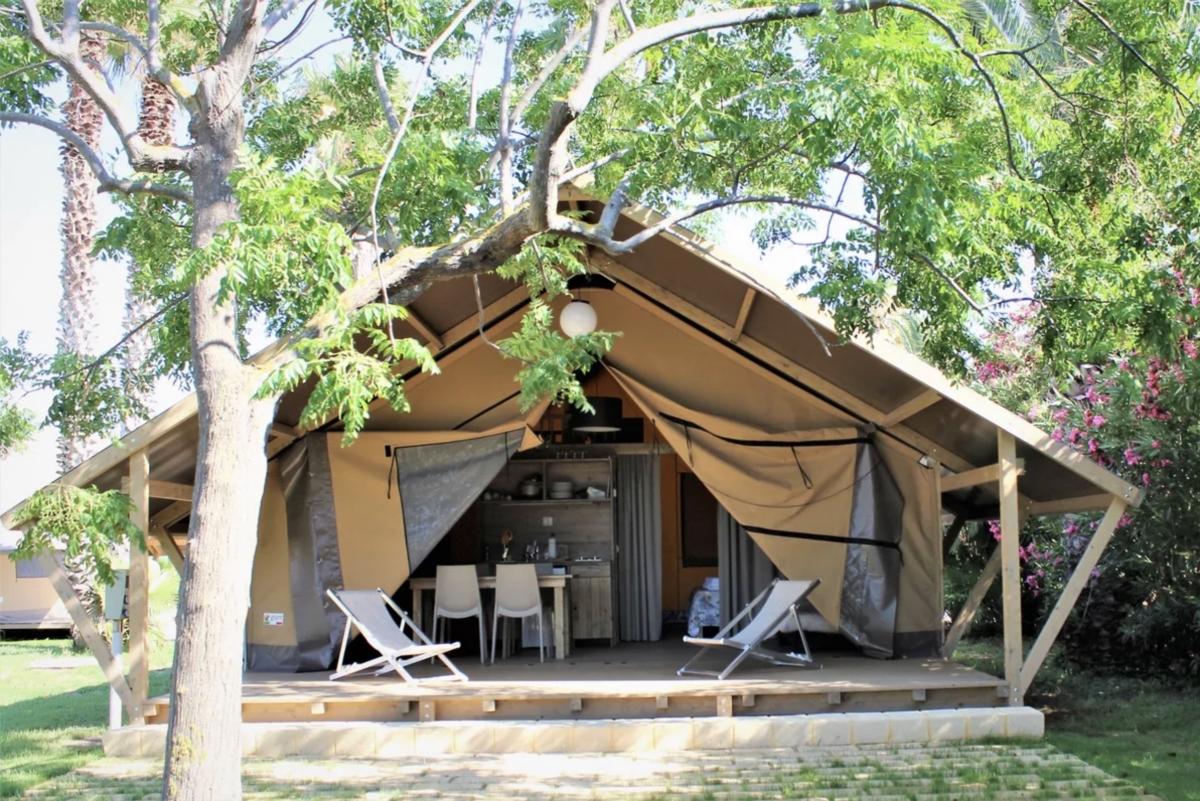 A circa 200 m dal mare e a 1,9 km dal centro, campeggio con tende glamping, appartamenti e ampie piazzole con prato all'inglese dotate di allaccio elettrico.