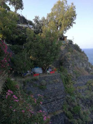 Campeggio immerso in un contesto naturalistico unico, risultato di antichissime eruzioni vulcaniche ormai erose nei millenni dal vento e dal mare, con pinnacoli e strapiombi sul mare, rocce nere.