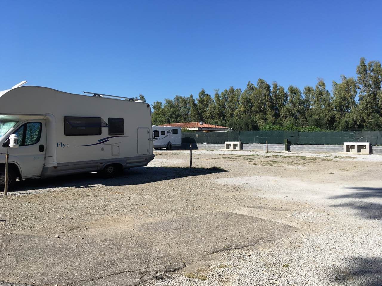 Piazzole delimitata da alberi e coperte da tende frangisole, fornite di un lavabo e allacciamento elettrico. Nelle vicinanze delle piazzole è ubicato il gruppo di servizi igienici nel quale vi sono docce con acqua calda.