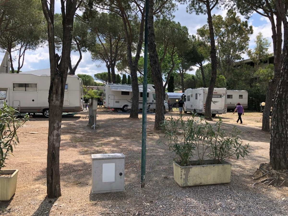 A 500 m da Marina di Bibbona e a1 km dalla spiaggia, struttura con case mobili, bungalow, maxicaravan e tende glamping in locazione, e 200 piazzole ombreggiate per lo più di stagionali, solo 20 libere, alcune dotate di allaccio elettrico e idrico.