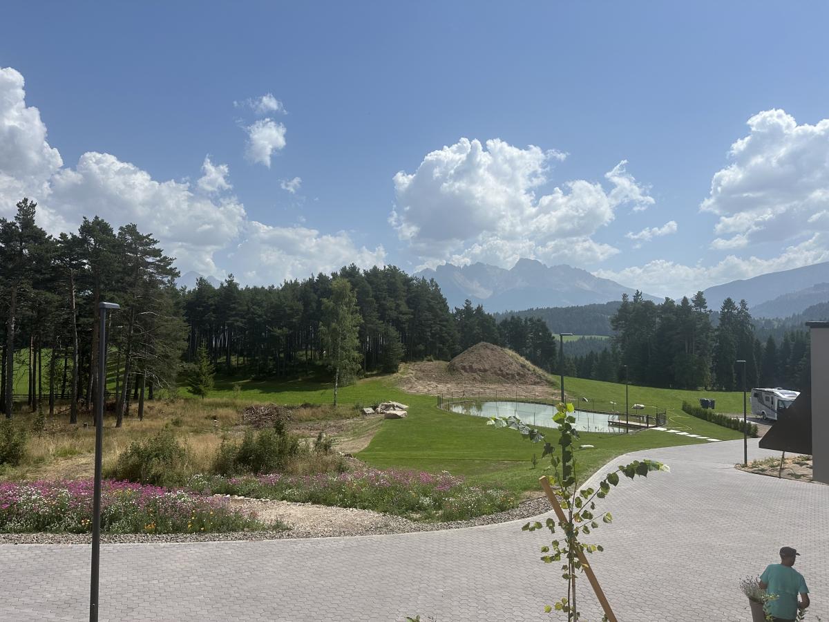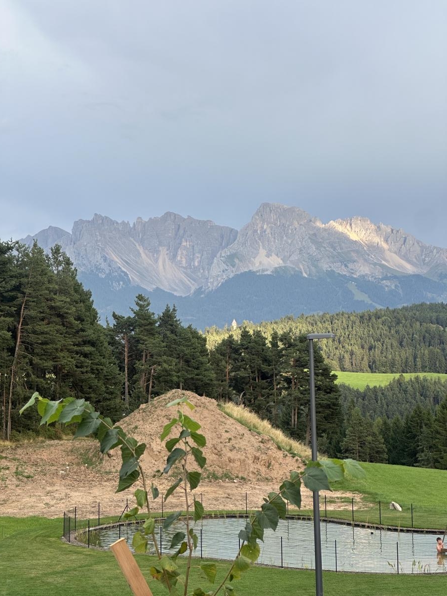 Nella Val d'Ega, campeggio con lodge, sauna, laghetto balneabile e cinque diverse categorie di piazzole disposte a gradoni, non ombreggiate, con allaccio elettrico da 16A, acqua potabile e scarico delle acque reflue.