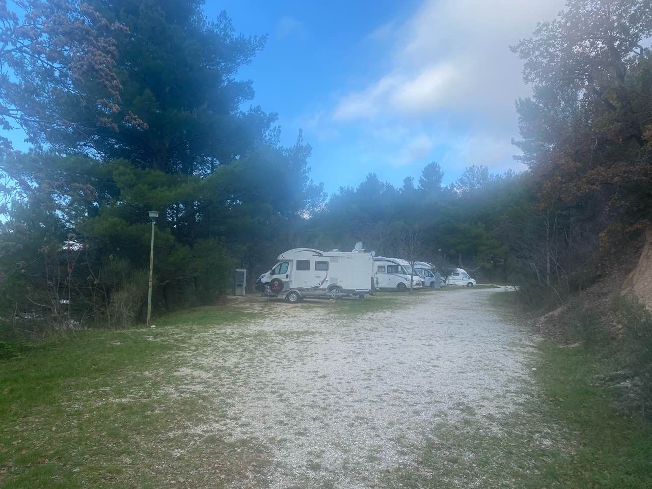 Posto meraviglioso, silenzioso. Piazzole larghe e ombreggiate, fondo in terra battuta e ghiaia. Pulito e senza erbacce che rimangono attaccate al pelo del cane. Animali (asinelli e muli) e parco giochi immerso nel verde. 15 minuti a piedi dal centro. Personale gentilissimo. Ristorante molto valido e bar/market (poco fornito in effetti, ma c'è una città a pochi minuti). Colonnina con buona capacità (ho acceso in contemporanea condizionatore, macchina da caffè e televisore senza problemi). Carico e scarico agevole. Docce pulitissime e servizio di lavatrici a gettone. Veramente un'ottima esperienza.