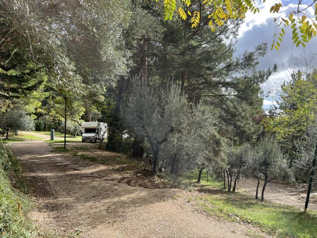 In mezzo al verde, piazzole ombreggiate, a solo 1,5 km da Assisi che ci si arriva da una stradina sterrata in parte all'ombra. Attacchi corrente ben posizionati e numerosi.