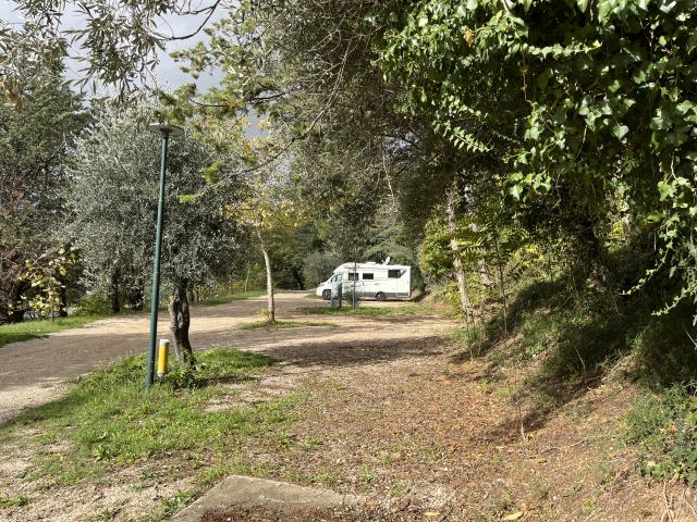 Ottimo per la visita alla città e all'Eremo delle Carceri. Disponibilità e cortesia dei gestori che ci hanno indicato le migliori posizioni dove metterci per stare tranquilli e riposare, ombreggiato, forse da rivedere un poco la zona carico scarico ma io con un camper piccolo non ho avuto nessun problema particolare. Anche se non siete camminatori il sentiero che porta in città fiancheggiato da bellissime querce è un piacere farlo e non ha nessuna difficoltà.