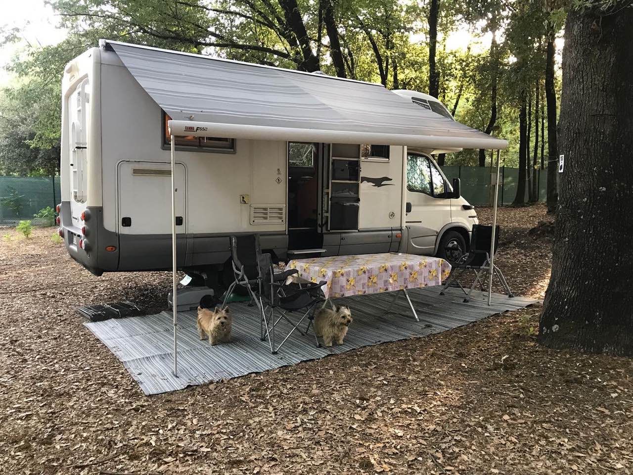 Piccola struttura con piazzole non delimitate, ombreggiata, servizi, colonnine elettricità (non vicine), piccolo bar/market e giochi per bambini, camper service.