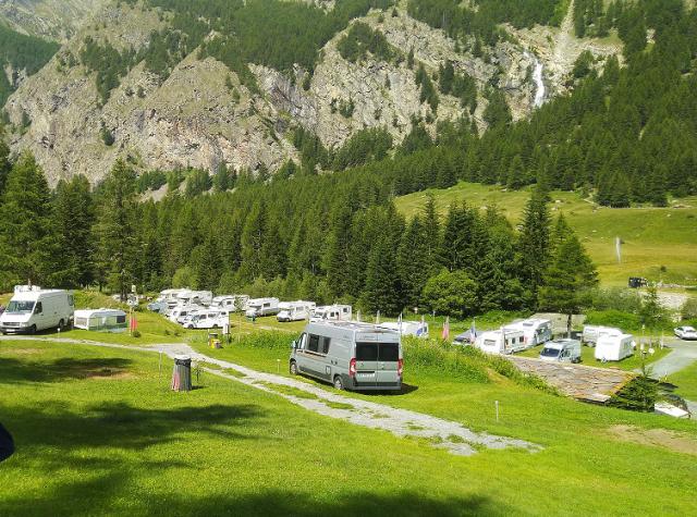 All'interno del Parco Nazionale del Gran Paradiso, piccolo campeggio vicino a fiume e cascata, dispone di piazzole su fondo erboso per tende, caravan e camper.