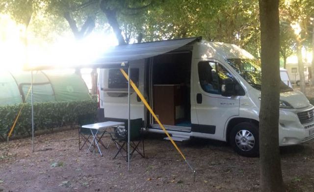 A circa 1 km dalla spiaggi, camping con piazzole su sterrato, ombreggiate, bar, negozio alimentari, piscina, servizi, docce, lavatrici.