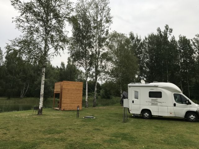 Bel campeggio con ampie piazzole erbose fornite di tutti i servizi, disposte attorno ad un laghetto vicino al fiume. Ottimo come punto d'arrivo dopo il lungo viaggio d'attraversamento della Polonia. Un km di strada sterrata per raggiungerlo