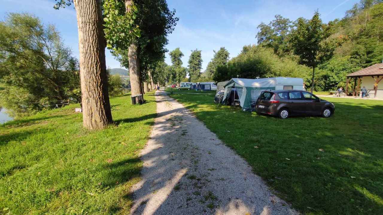Comodo per visita castello Karlstejn che si raggiunge a piedi in passeggiata di 1/2 km, presenza barbecue, vicina al fiume, pianeggiante su prato.