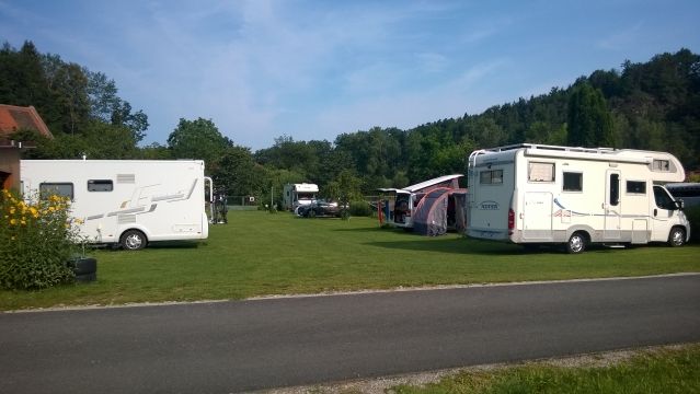 Piccolo campeggio immerso nel bosco, circa 20 piazzole su fondo erboso solo per caravan e tende, alcune con allaccio elettrico, altre senza, locale sanitario con bagni e docce acqua calda, area coperta con lavelli per stoviglie, area comune coperta, zona BBQ con legna in loco a pagamento.