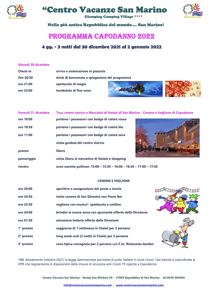 4 gg. - 3 notti per inziare il nuovo anno 2022 in serenità, allegria e sicurezza!