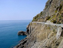 I treni non sono molto frequenti, occorre fare attenzione agli orari se ci si sposta da un paese all'altro in treno per non perdere tempo attendendo alla stazione. Riomaggiore: prima di intraprendere la via dell'Amore, dalla stazione parte un sentiero che torna verso La Spezia per intenderci e che ci porta al paesino di Riomaggiore. Vale proprio la pena di visitarlo, come del resto tutti gli altri 4 paesi. Una volta terminato il giretto a Riomaggiore si può intraprendere la famosa "Via dell'Amore". Si tratta di una passeggiata a picco sul mare e in parte scavata nella roccia, con dei fantastici scorci sulla costa sottostante e sul mare aperto. Il sentiero non presenta alcuna difficoltà e si percorre in una ventina di minuti. Si arriva così a Manarola. Per entrare in paese si percorre una galleria pedonale.