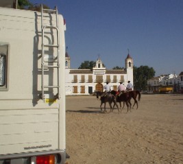 Giornata di mare.Alle 18,30 partiamo diretti a El Rocìo nel parco della Doñana, Il caldo è insopportabile. Arriviamo in questa località sorta con fini celebrativi dedicata alla Madonna de la Paloma, effige trovata su di un ramo da un pastore e intorno alla quale è sorta la chiesa e tutte le case fatte costruire da confraternite religiose. il villaggio è molto caratteristico con le strade di sabbia e la chiesa che, seppur costruita nel 1960, è bellissima.