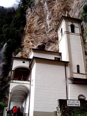 Dopo avere acquistato i biglietti, la guida ci introduce nel magico mondo sotterraneo del complesso di grotte, spiegandoci con dovizia di particolari per più di due ore ogni passaggio: splendide stalagmiti, stalagtiti e concrezioni calcaree. Soddisfatti e con molte foto all'attivo, lo stesso pullman ci riaccompagna all'area di sosta, non prima di avere fatto scendere chi lo desiderava al bivio per l'eremo di Calomini che raggiungiamo dopo una passeggiata di circa 1 chilometro sotto una pioggerella che si infittisce sempre più. Ma ogni fatica è ampiamente ripagata dalla bellezza del posto, accompagnata dalla gentilezza di frate Natale che, dopo averci accolti, ci conduce in visita sia alla chiesetta che alle cellette. Un delizioso profumino di sugo ci accompagna per tutta la visita, torturandoci per la fame; facciamo così la conoscenza della simpatica signora Clive, un autentico "maresciallo di ferro" che - con schiettezza tutta toscana - mette in riga tutti, frate compreso! Terminata la visita senza essere riusciti ad estorcere alla signora la ricetta del suo segretissimo sugo, ci "accontentiamo dei nostri panini "al sacco" di fronte al panorama sulla valle sottostante; il buon Luigi e altri volontari passano quindi a prenderci con i camper. Per chi vuole raggiungere l'eremo con il camper, faccia attenzione alla stradina i cui tornanti sono in alcuni punti piuttosto stretti. Sotto una pioggia torrenziale raggiungiamo l'area di sosta e trascorriamo il rimanente pomeriggio a nanna per un meritato riposo. Alla sera, dopo avere prenotato con anticipo il ristorante, ci ritroviamo tutti a cena, gustando un menù tipicamente toscano corroborato da buon vino e ottima grappa casalinga. Poi di nuovo tutti in branda.