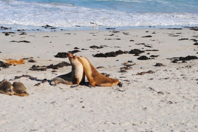 Nell'isola visitiamo le ”Remarquable Rocks” formazioni rocciose di una bellezza e colori impressionanti, una zona con centinaia di foche, molte di queste lontane anche un centinaio di metri dal mare per raggiungere delle aree con vegetazione e qui ci è stata data la possibilità dalla ranger di avvicinarsi a pochi metri, facendo attenzione a non disturbarle troppo. Sono riuscito durante il viaggio sull'isola ad evitare con una pronta sterzata l'investimento di un echidna, una specie di riccio dal lungo naso e pare in via di estinzione.