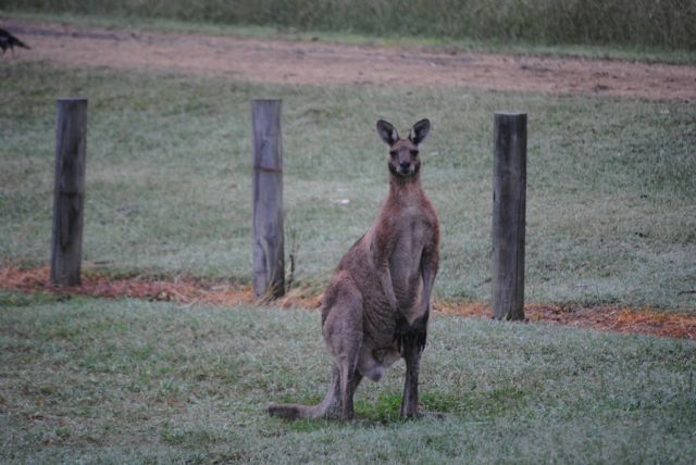 Il viaggio continua in direzione di Brisbane, vi sono molte coltivazioni di caffè e di canne da zucchero, questa non è una zona turistica, infatti, arrivato il buio verso le 18, non riusciamo a trovare un campeggio. Chiedo allora al gestore di un distributore se posso sostare da loro per la notte, me lo concedono e mi sistemo sul retro, al mattino nel prato accanto vi sono una decina di canguri che mi guardano sospettosi, ma senza allarmarsi più di tanto, li fotografo e ripartiamo.