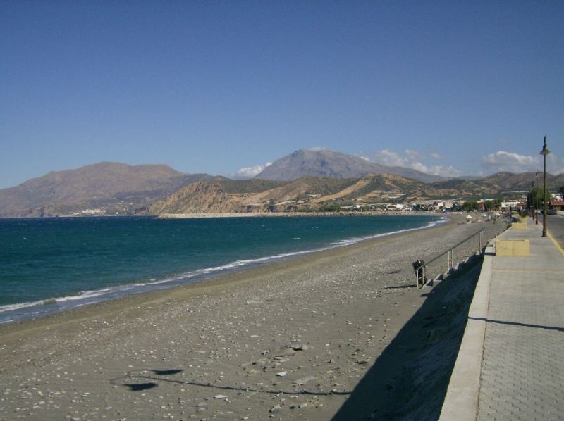 Percorriamo la strada che costeggia la grandissima spiaggia alla ricerca di un posto per sostare, purtroppo non ci sono molte possibilità vicino al mare. Alcuni parcheggi di taverne espongono addirittura dei cartelli con il simbolo di divieto di sosta ai camper, siamo stupiti, non ci è capitato in nessun altro posto di Creta di essere espressamente non desiderati.