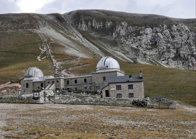 Ci posizioniamo nella sosta per camper e autobus (assenti) dietro il vecchio albergo, storico luogo di prigionia di Mussolini nel ’43.