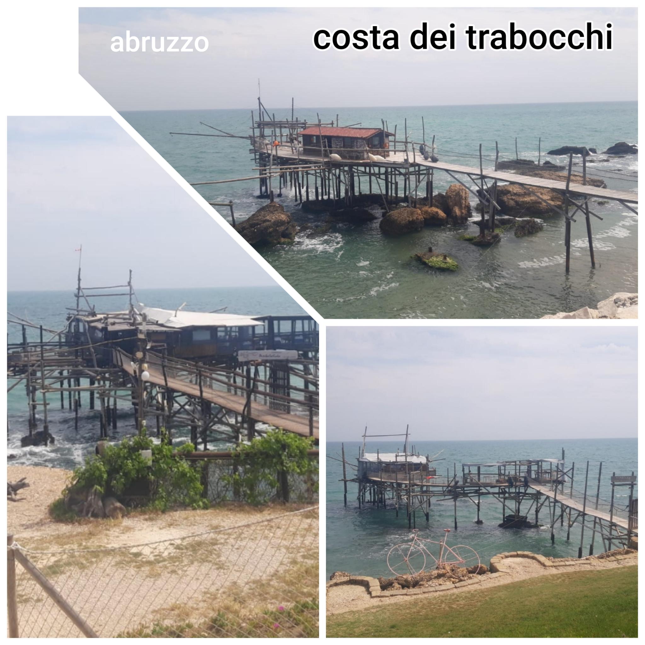 La prima tappa è in Abruzzo alla Costa dei Trabocchi dove arriviamo nel primo pomeriggio. Ci sistemiamo al Camping SunBeach direttamente sul mare a Borgata Marina, vicino Fossacesia. Tariffa: 22 euro al giorno compresi tutti i servizi, direttamente sul mare con piscina e ristorante. Molto consigliato.