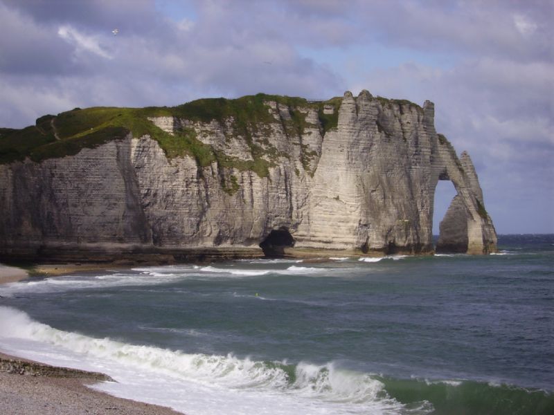 Alle ore 17,30 siamo ripartiti e abbiamo attraversato il ponte di Normandia, costo €.5, quindi alle 19,00 siamo arrivati a Etretat il paese delle più alte falesie rocciose, pernottamento nell’area camper, costo €.5 al giorno dove abbiamo trovato altri tre equipaggi vicentini, la sera dopo una discreta giornata si è scatenato un violento temporale con grandine e vento fortissimo, noi eravamo in camper ma faceva paura.