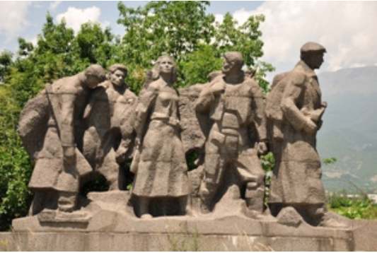 Una signora bulgara alla quale chiediamo ragguagli sul monumento ci spiega, quasi schernendosi, che si tratta di una scultura inneggiante ai Partigiani Comunisti poi ci omaggia di un mazzo di profumatissime rose.